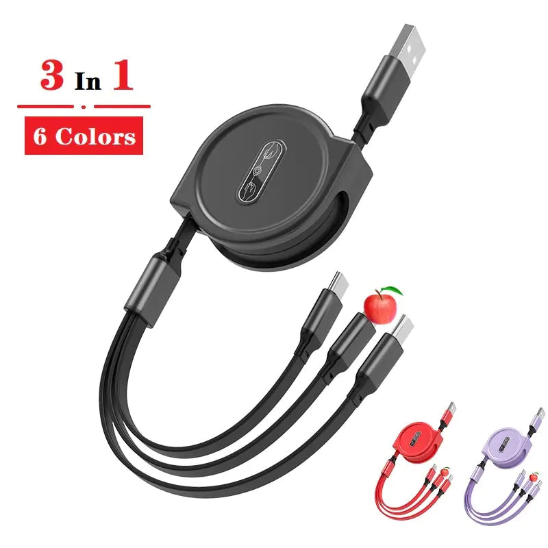 Introducing the 120cm Extendable Data Cable 3 In 1 USB Charge – the ultimate compact solution for charging and data transfer. This versatile cable features compatibility with iPhone 13, Micro-USB, and Type-C devices, offering a portable and retractable design that fits perfectly into your lifestyle. With its 120cm length, this cable provides ample reach while remaining tangle-free and easy to carry. Whether you're charging your iPhone X, iPhone 12, Samsung S9, or any other supported device, this cable ensures a reliable and efficient connection. Experience the convenience of a single cable that covers all your charging needs. Streamline your tech accessories with the 120cm Extendable Data Cable 3 In 1 USB Charge – the essential tool for staying powered and connected on the go.